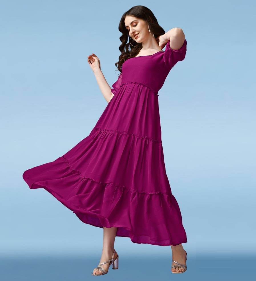 Solid Georgette Stitched Flared/A-line Gown (Purple)