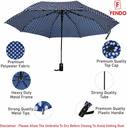 Fendo Bobby Polka Dots 3 Fold Protection Monsoon/Rainy & Sun Umbrella in Navy Blue Umbrella (Blue, White)