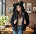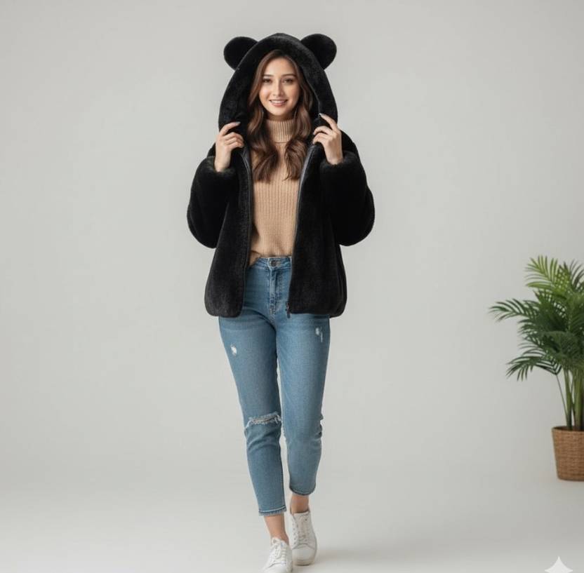 Stay cozy and cute all winter long with this adorable Teddy Ear Hoodie Jacket for Women. Crafted from ultra-soft plush fleece fabric, this jacket offers superior warmth and comfort. The unique bear ear hood design adds a fun, youthful charm to your outfit, making it perfect for casual wear, coffee dates, or cozy evenings out.