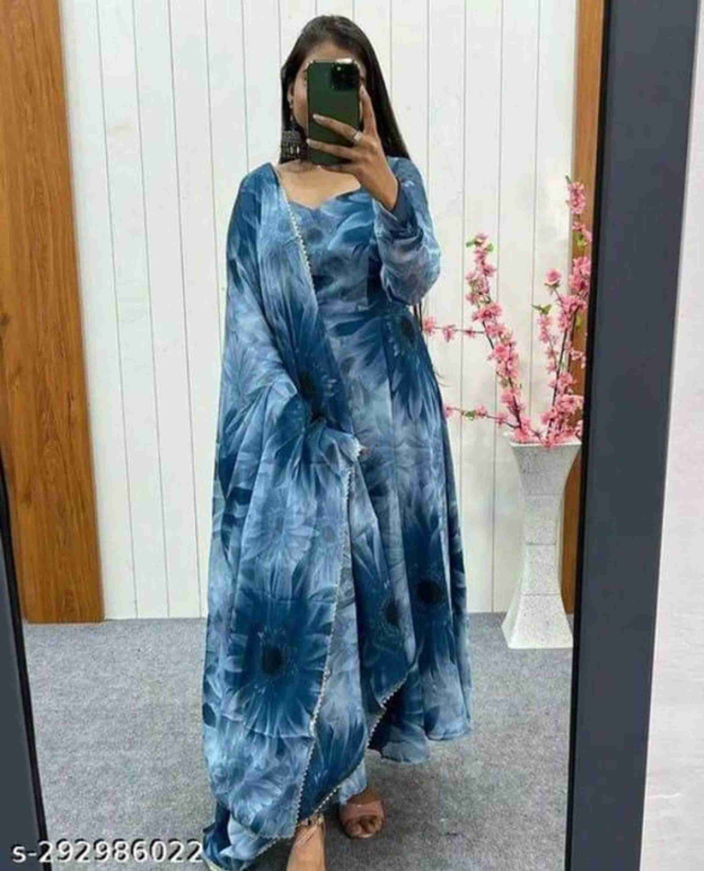 This dark blue gown is perfect for various occasions like weddings, festivals, parties, and even casual outings. Its elegant design and comfortable fabric make ...Read More