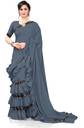 fentik.com Solid/Plain Bollywood Lycra Blend Saree  (Grey)