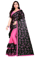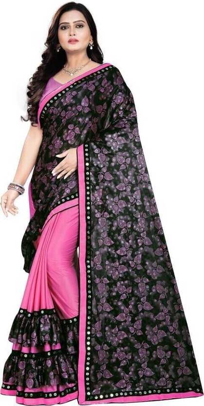 fentik.com Solid/Plain, Embellished Bollywood Lycra Blend Saree (Pink)