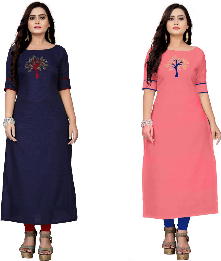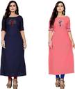 fentik.com Women Patchwork A-line Kurta (Dark Blue, Pink)