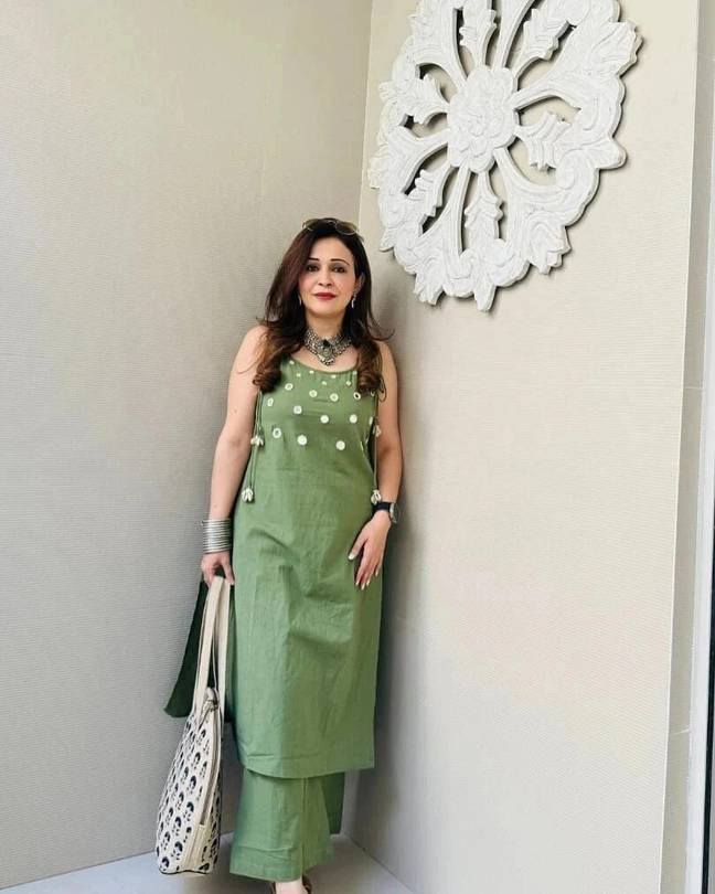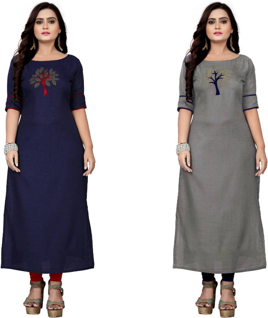 fentik.com Women Patchwork A-line Kurta (Dark Blue, Grey)