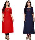 fentik.com Women Patchwork A-line Kurta (Dark Blue, Red)