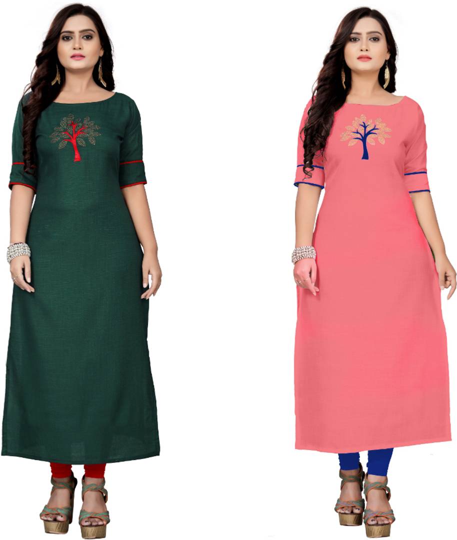 fentik.com Women Patchwork A-line Kurta (Green, Pink)