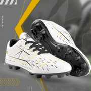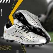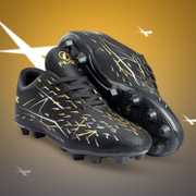 Step onto the field with confidence in these striking FEROC WILD FIRE football shoes. Designed for optimal performance, these versatile boots feature a sleek white base adorned with dynamic black patterns and eye-catching yellow accents. The durable synthetic upper provides excellent ball control, while the strategically placed studs offer superior traction on natural grass surfaces. The classic lace-up closure ensures a secure, customised fit, making these shoes suitable for players of all ages. The robust construction includes reinforced toe areas and a comfortable cushioned insole for extended gameplay comfort. Perfect for regular matches and training sessions, these football shoes deliver the perfect blend of style and functionality. The moulded outsole provides reliable grip and stability during quick directional changes and sprints. Ideal for both amateur and competitive players looking for dependable football footwear that doesn't compromise on performance or aesthetics.