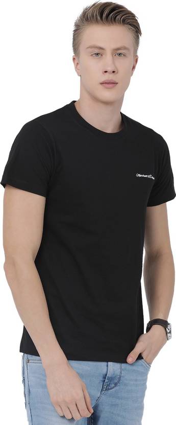 FERRET PRINTED COLLAR T-SHIRT FOR MEN AND BOYS Men Solid Round Neck Pure Cotton Black T-Shirt