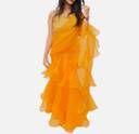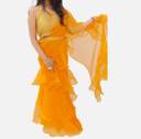 Feshomania Solid/Plain Bollywood Organza Saree (Yellow)