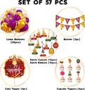PACKAGE INCLUDES - 1 Set of Banner & Ribbon, 25 Pcs Latex Balloons, 12 Pcs Swirls Ribbons & 12 Pcs Swirls Cutouts, 1 Pc Cake Topper, 6 Pcs Cupcake Toppers.