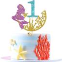 Festiko Festiko Mermaid One Cake Topper,Happy 1st Birthday Cake Topper (Blue Pack of 1)