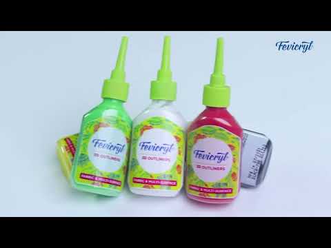 SET OF 5 3D OUTLINERS - Pidilite Fevicryl 3D Outliners regular assorted pack has 5 colours like red, yellow, light green, white and black for all types of art work like bottle art, glass painting, fabric painting and more, NON-TOXIC AND SAFE- Fevicryl 3D Outliners are safe for children and can be used by all age groups., EASY TO USE & QUICK DRYING - With a long nozzle, application of 3D Outliners is easy and well defined. The colours are crafted in a manner such that once applied on the surface it quickly dries off and becomes dense and brilliant once completely dry, SUITABLE FOR - Fevicryl 3D Outliners are suitable for application on all surfaces like fabric, glass, wood, paper, earthen pots and more. They can use to create bottle art, mandala art, TURN YOUR ART INTO A MASTERPIECE - With Fevicryl 3D Outliners, you can create raised patterns on a flat surface to give a three dimensional look to your art and turn it into a master piece