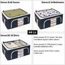 FEVSAQ 44 Ltr Clothes Organizer Storage Boxes for Clothes Cloth Organizer Fabric Foldable Box Steel Frame Storage Organizer for Clothes (Dark Blue)