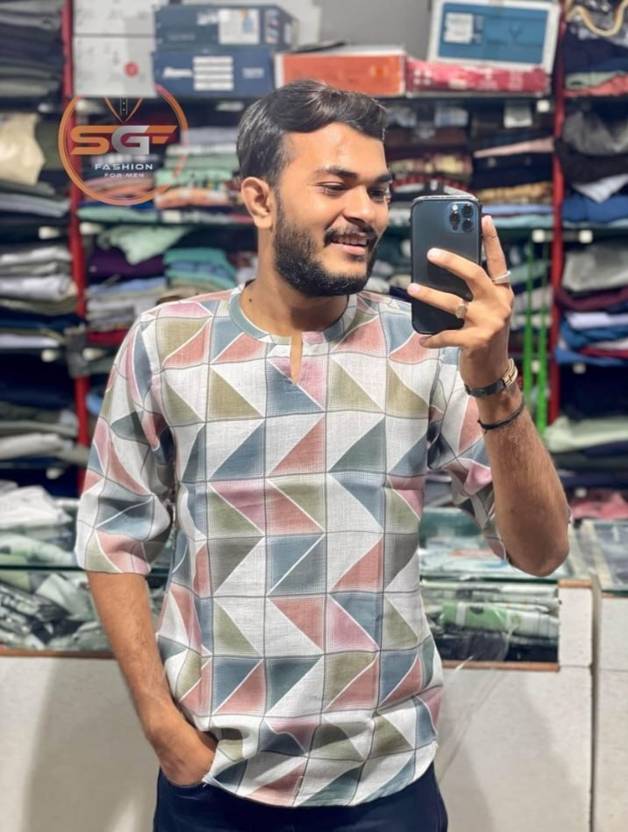 Men Regular Fit Printed Slim Collar Casual Shirt