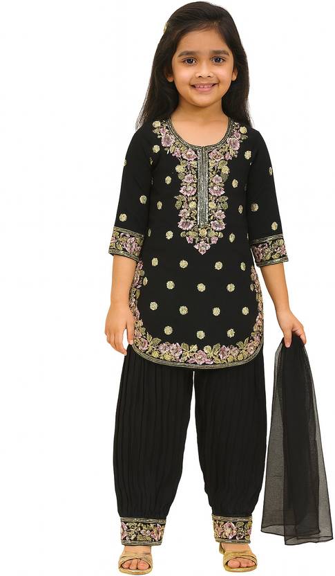 Girls Salwar Suit with Dupatta Set – Elegant Embroidery Work Traditional Ethnic Wear I Festive Party Dress I Birthday Dress for Girls Black Size 6-7 Years