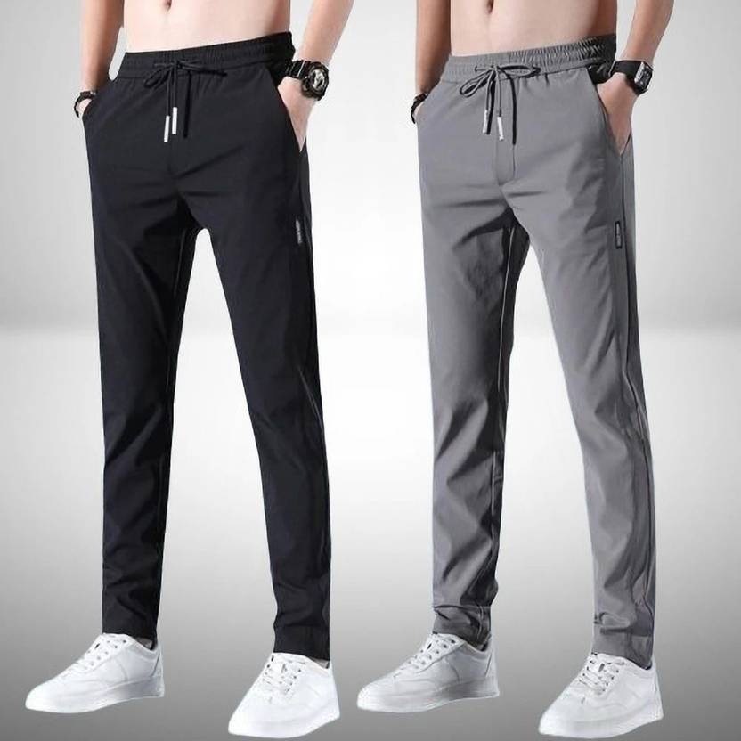 FICKA Pack of 2 Men Solid Black, Grey Track Pants