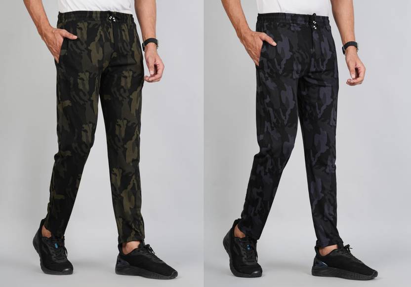 FICKA Pack of 2 Men Solid, Printed Green, Black Track Pants