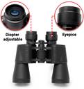Extra-wide field of view Classic design with comfortable grip Endurable metal prism housing & focusing mechanism Sharp & crispy image How to use the binocular : 1. Close your right eye and sight an object with your left eye.Focus the binocular by rotating the center focus wheel until the image is sharp and clear. 2. Open your right eye and close your left eye.Rotating the right eyepiece until the object sighted is sharp and clear(Note the setting of diopter scale for later use.) 3. Both sides(eyes) are now in focus and you will need to use only the center focus wheel to focus on the other objects. 4. Rubber fold-down eye cups: Fold down for use with eyeglasses and fold up for use without eyeglasses.They provide comfort and promote viewing ease.