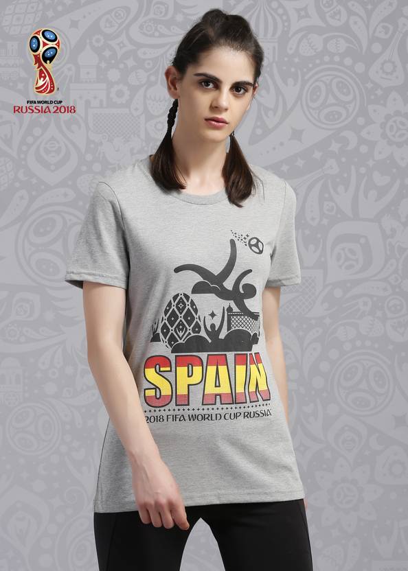 FIFA Spain Graphic Print Women Round Neck Grey T-Shirt