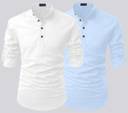 Fifth U Men Solid Straight Kurta (White, Light Blue)