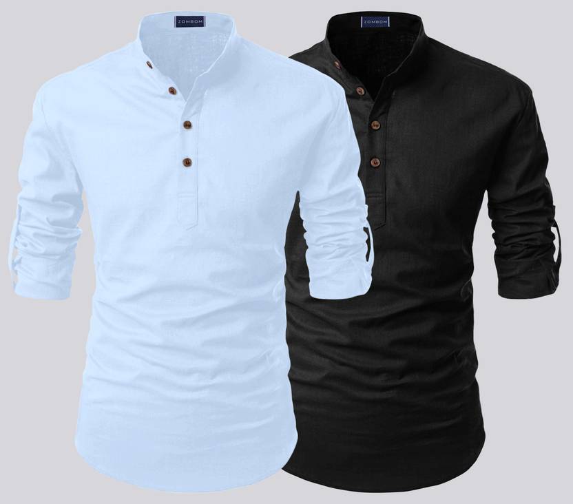 Designed for the urban man, FIFTH U Casual Kurta Shirt is the perfect pick for a casual, yet classy expression. Made of cotton polyester blend, the fabric is soft on the skin to provide all day comfort. It features a curved hemline and offers a relaxing fit that accentuates a neat look. Whatever the occasion, exude confidence in style with this fashionable shirt. Soft and comfortable to wear, the fabric is breathable and easy on the skin- providing a cool effect to keep you relaxed throughout the day. The Kurta shirt is styled with a solid tone, long sleeves and a straight collar. Checkered prints lined along the button placket, collar and cuffs create a distinctive casual appeal. The contrasting print on the inner cuffs allow you to switch from a professional look to a relaxed casual appearance when folded. This casual modern fit shirt has a curved hemline with stitched borders. It not only ensures a durability to the seams but also accentuates the stylish and casual look of the Kurta shirt. You can go casual and keep it outside or go formal and tuck it in. The casual Kurta shirt from FIFTH U is tailored to offer a regular and smart fit. These shirts are stitched in our own factory with care. The fit is very modern with very durable threads used for stitching. All Kurta shirts are cut from machines which bring to you the perfect fit and make sure each shirt is the same. [ PACK OF : 2 KURTA SHIRT ]