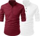 StoneHeart Men Solid Cotton Blend Ethnic Dress  (White, Maroon)