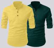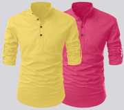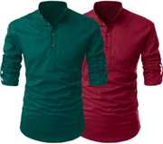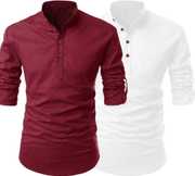 This short kurta, crafted from a premium cotton blend, combines style and comfort effortlessly. Its lightweight and breathable fabric make it an ideal choice for warm weather, ensuring you stay cool and comfortable throughout the day. The kurta features full sleeves, offering a touch of sophistication and versatility. It can be easily rolled up for a more casual look or left down for a more formal appearance. The design is modern yet timeless, with a clean-cut silhouette that flatters all body types. A subtle, well-placed pocket adds a practical touch without compromising the sleek aesthetic. The kurta's minimalistic design allows it to be paired seamlessly with jeans, chinos, or traditional trousers, making it a versatile addition to any wardrobe. Available in a variety of colors, it caters to diverse style preferences, from bold and vibrant to subtle and muted tones. Whether you're dressing for a casual day out or a semi-formal gathering, this cotton blend short kurta promises to be a reliable and stylish choice.