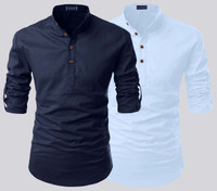 You can get this kurta, as it comes with a mandarin collar and roll-up sleeves to accentuate your casual and festive look. This unique neck and sleeve design can help you to flaunt your style at special events. If you are into fashion, this kurta is a must-have in your collection. Add style to your look by choosing this mandarin neck and roll-up sleeve kurta.
