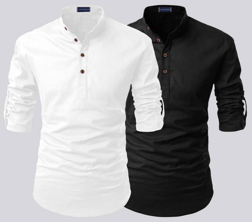 The kurtas are adorned with a classy Mandarin collar, adding sophistication to their overall design. The Mandarin collar, known for its clean lines and understated elegance, elevates the traditional kurta style. This feature not only enhances the visual appeal but also provides a versatile neckline that can be dressed up or down. The classy collar adds a refined element to the kurtas, making them suitable for many occasions and looks.