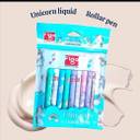 DESIGN THEME: Charming unicorn-themed liquid roller pens featuring whimsical artwork with rainbows, clouds, and magical motifs