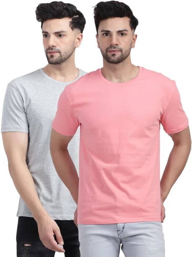 TRULYFEB Pack of 2 Men Solid Round Neck Polyester Pink, White T-Shirt