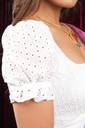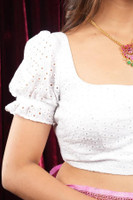 Intricate chikankari-inspired embroidery adds an elegant touch to this blouse’s appearance. The delicate patterns bring a hint of tradition without overwhelming the overall look, lending subtle sophistication suitable for festive celebrations or formal settings where understated beauty is appreciated.