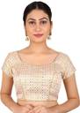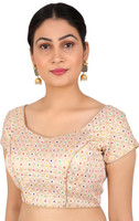 Boasting an attractive woven pattern, this blouse can glam up your ethnic attire. Therefore, you can match it with a saree of your choice, a gold-plated jewellery set, and flats to round off your look.