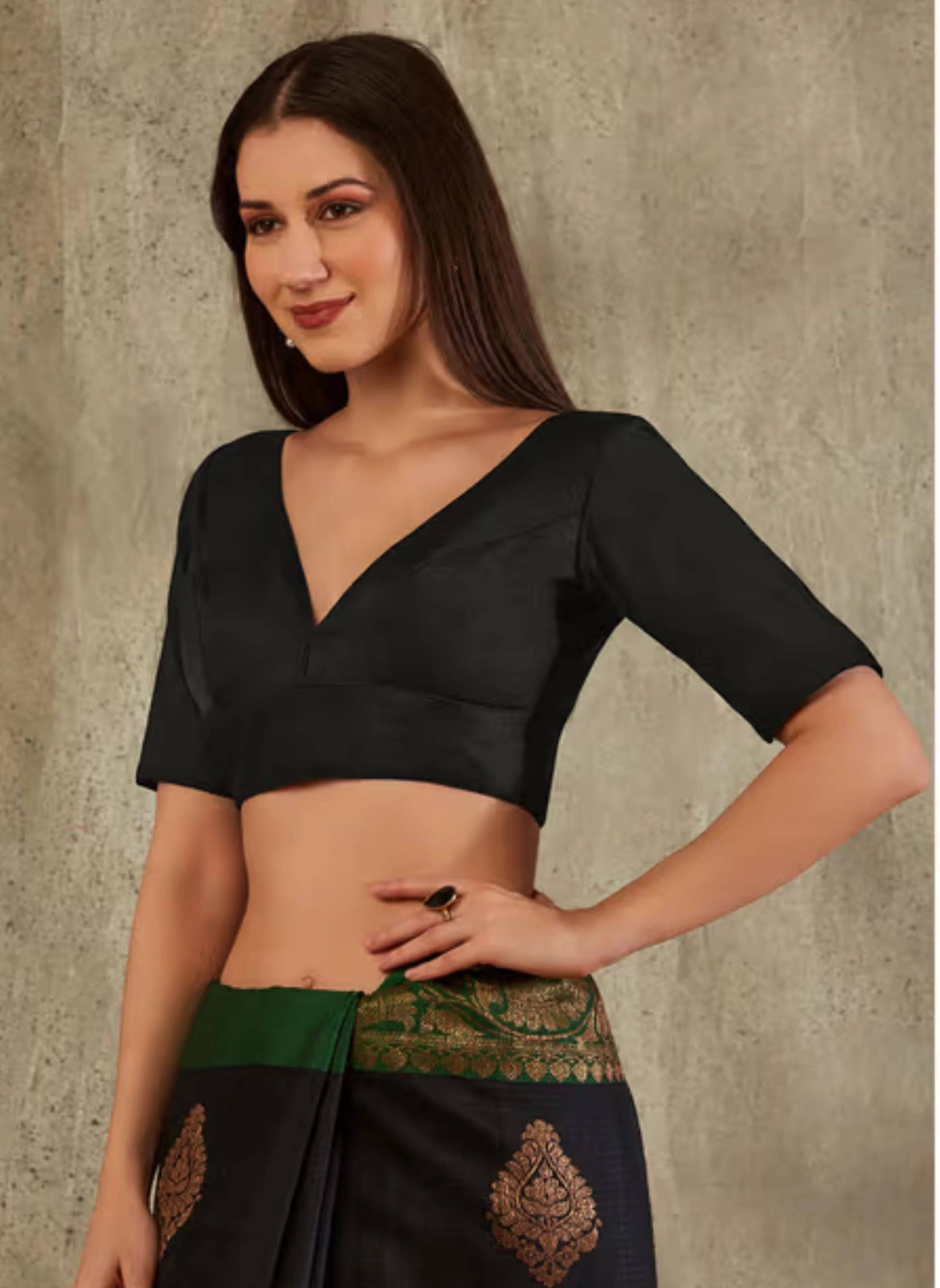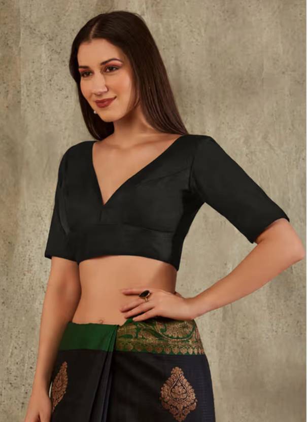 A simple, modern blouse is what we all desire in our wardrobe. This saree blouse from the house of FigureUp is readymade and easy to wear. The solid design contributes to the elegance of the blouse, while the trendy neck cut makes it fashionable. It can be fastened from the back. The firm stitching of the blouse makes it durable in nature. You can match it with a saree and wear it at both formal and informal events.
