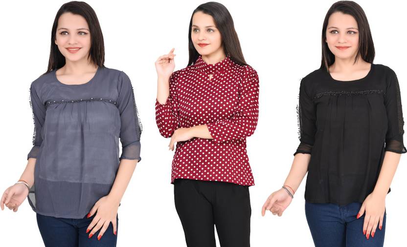 Girls Casual Crepe Top (Multicolor, Pack of 3)