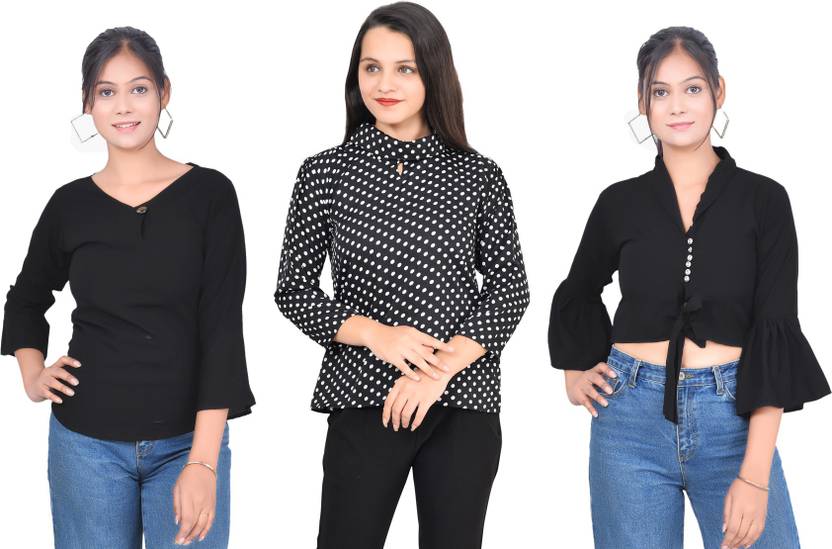 Girls Casual Crepe Top (Multicolor, Pack of 3)