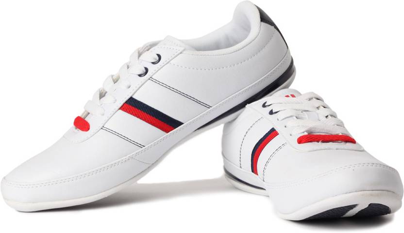 Walk in style by combining the Fila Stradd Sneakers with an array of stylish clothes and be the center of attention wherever you go. These sneakers come in white, with red and navy colored stripes on the side. The shoe is made from synthetic materials and features the brand name on the outer front side. The laced Fila Stradd Sneakers goes well with casual outfits and the panel detailing enhances the styled look of the shoe. The cushioned ankle provides ample support for your feet.