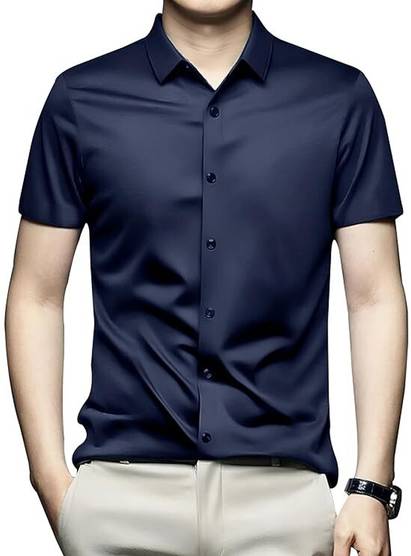 PRAIZY Men Solid Casual Dark Blue Shirt