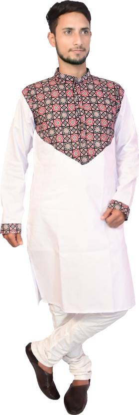 Men Printed Pure Cotton A-line Kurta (Black, Red, White)