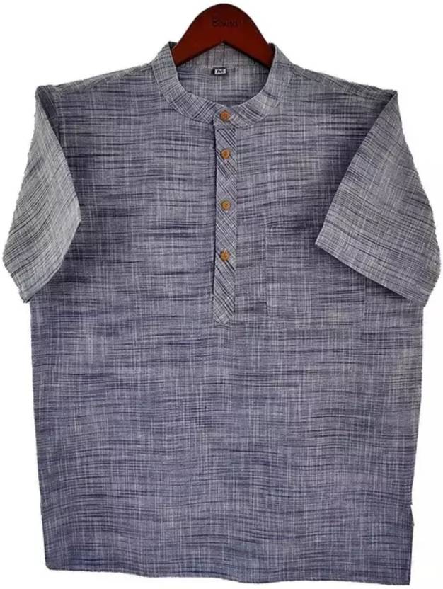 fincart Men Solid High Low Kurta (Orange)