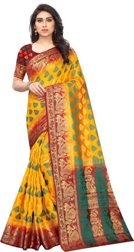 FINE WEAR Woven Bollywood Cotton Silk Saree (Multicolor)