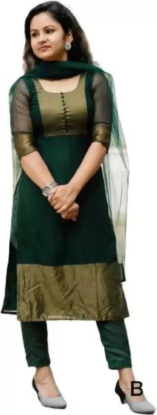New Design Dupatta set For Woman. Top Fabric -Golden boarder semi Georgette.Length - 46' inch Bottom fabric- Cotton (Fully stitched Bottom ).Dupatta - soft net with attractive Maching jari lace work