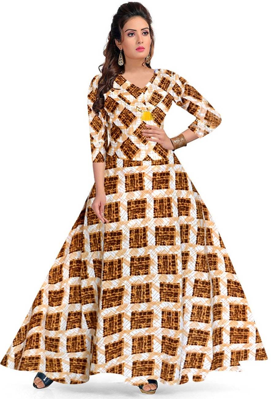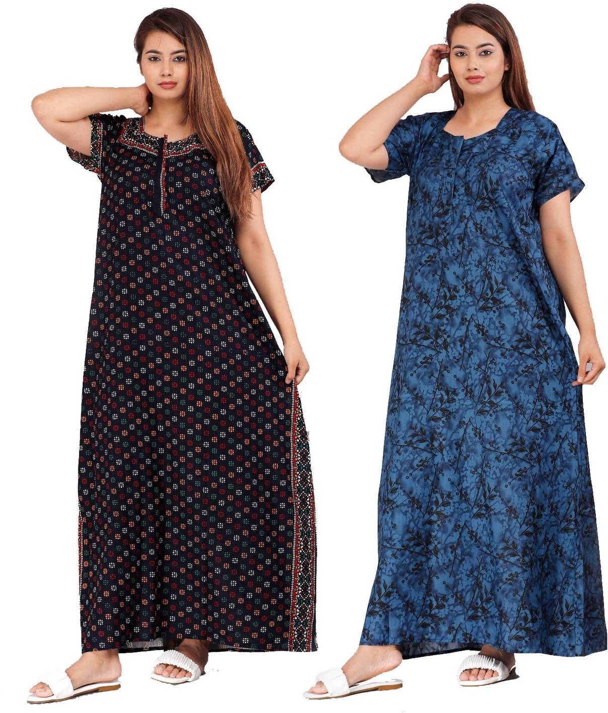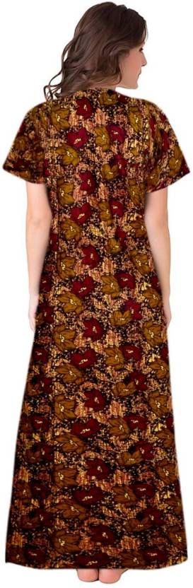 NIRMALA FASHIONS Printed Pure Cotton Stitched Straight Gown  (Multicolor)