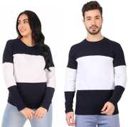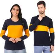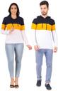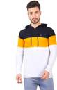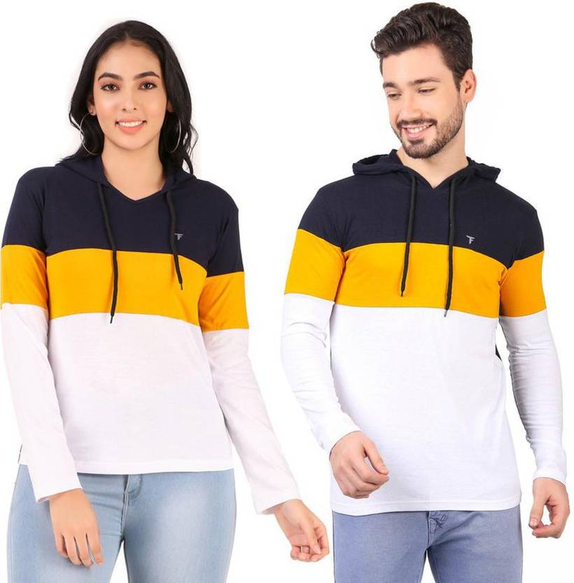 FINETTOUCH Colorblock Couple Hooded Neck White, Yellow, Navy Blue T-Shirt