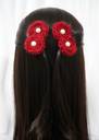 Red Woolen Crochet Flower Hair Clip with White Pearl