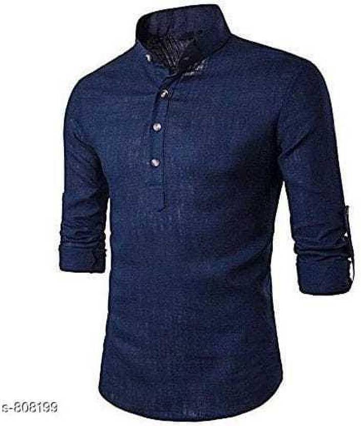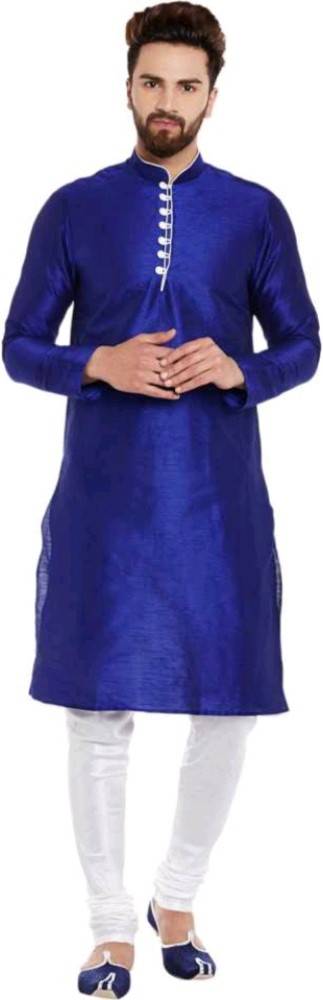 FINFOL Men Solid Straight Kurta (Dark Blue)