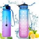 Made of quality plastic, this water bottle is 100% BPA FREE, free and healthy for your daily water drinking. Perfect for hiking, cycling, biking, camping, running, Yoga or any other sports at home, the gym and in the office. The top lid is designed with a secure lock, making it dust and leak proof. Simply open with one hand by clicking the button Feature with a silicone straw which allows you to enjoy spill-proof sipping. Simply open with one hand by clicking the button to access your fresh water, the flip top lid is designed with a secure lock, making it dust and leak proof. Fast water flow mouth opening helps you hydrate faster. Light weight with a portable wrist strap makes it convenient for on-the-go hydration. With a removable strainer, it is easy to infuse fruit & tea in your drink. The mouth is wide enough to fit ice cubes, also easy to clean With a variety of vibrant colors and cute patterns available, this excellent bottle is the best present idea for yourselves, friends, family members, coworkers, women and men who enjoy a healthy lifestyle With a portable strap and carry loop handle it is easy for clip-on and on-the-go hydration. The mouth is wide enough to fit ice cubes, also easy to clean. A must have for any fitness goals including weight loss, appetite control and overall health. Perfect for hiking, cycling, biking, camping, running, Yoga or any other sports at home, the gym and in the office...