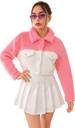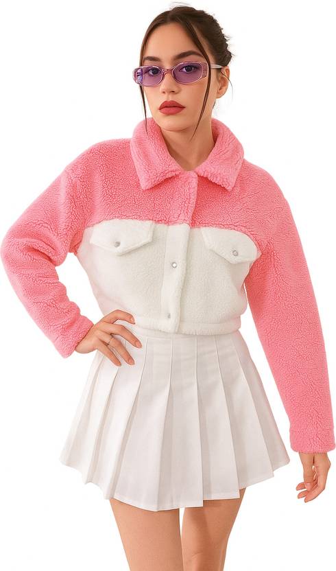 Stay stylish and warm this season with the Winter Glow Women’s Colorblock Fleece Jacket. Designed in a trendy pink & white sherpa fleece fabric, this jacket is the perfect blend of fashion and comfort. Its soft and cozy texture keeps you warm during chilly days, while the modern cropped fit adds a chic touch to your casual look.