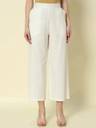 FIORRA Off-White Palazzo Pants, made from soft cotton, offer a comfortable and elegant fit for women, perfect for creating a chic and versatile look for both casual and semi-formal occasions.