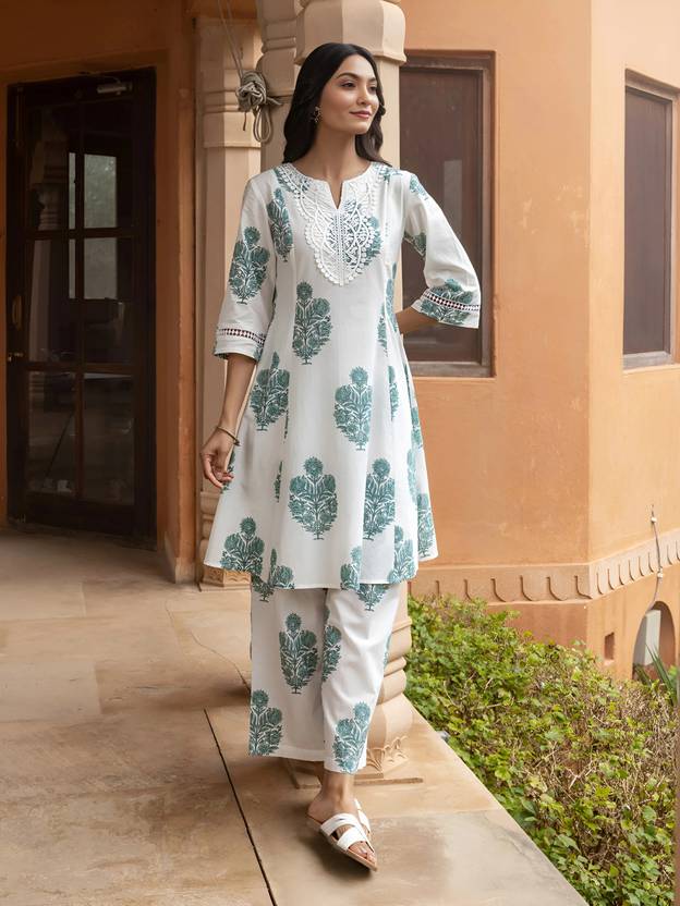 This beautiful printed Cotton Blend Kurti and Pant Set from LookMark is suitable for all ocassions. This attractive ethnic outfit will look trendy as casual party wear, festive wear and also on religious ceremonies and weddings. It also gives a formal look perfect for office wear. It can also be used as lounge wear and leisure wear. It gives a great feel as it is made of blend cotton fabric. It has got the classic neck look which makes women feel stylish.